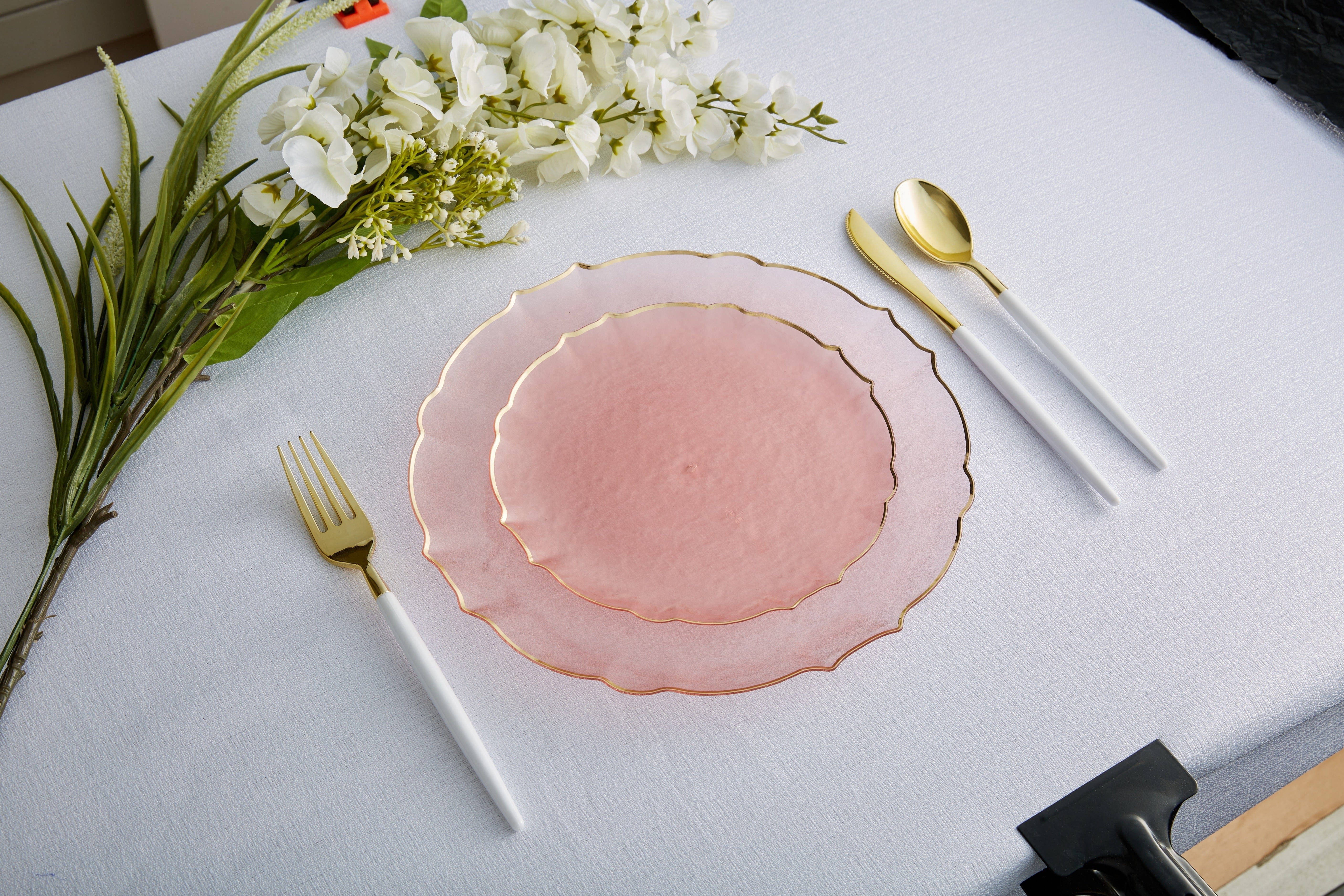 Rose Frosted Plate and Gold Plastic Plates Set | 32 Pack
