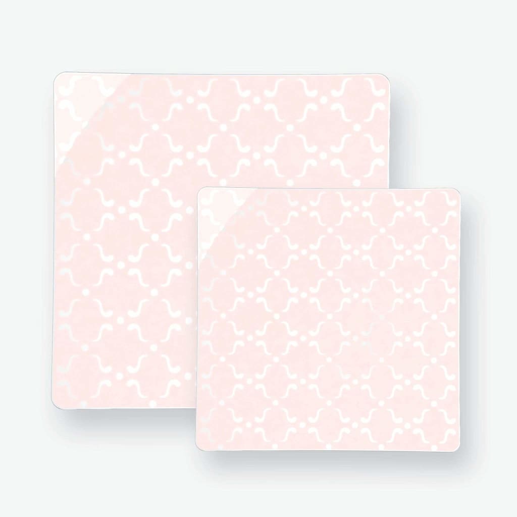 Square Blush • Silver Pattern Plastic Plates | 10 Plates