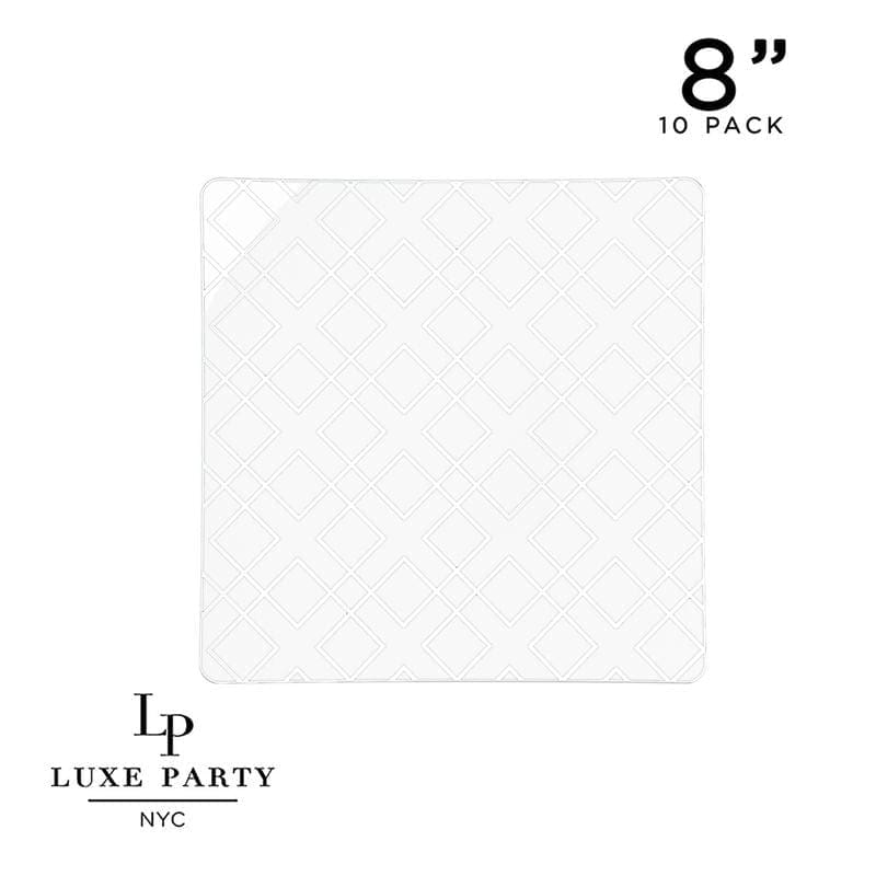 Square Clear • Silver Art Deco Pattern Plastic Plates | 10 Plates