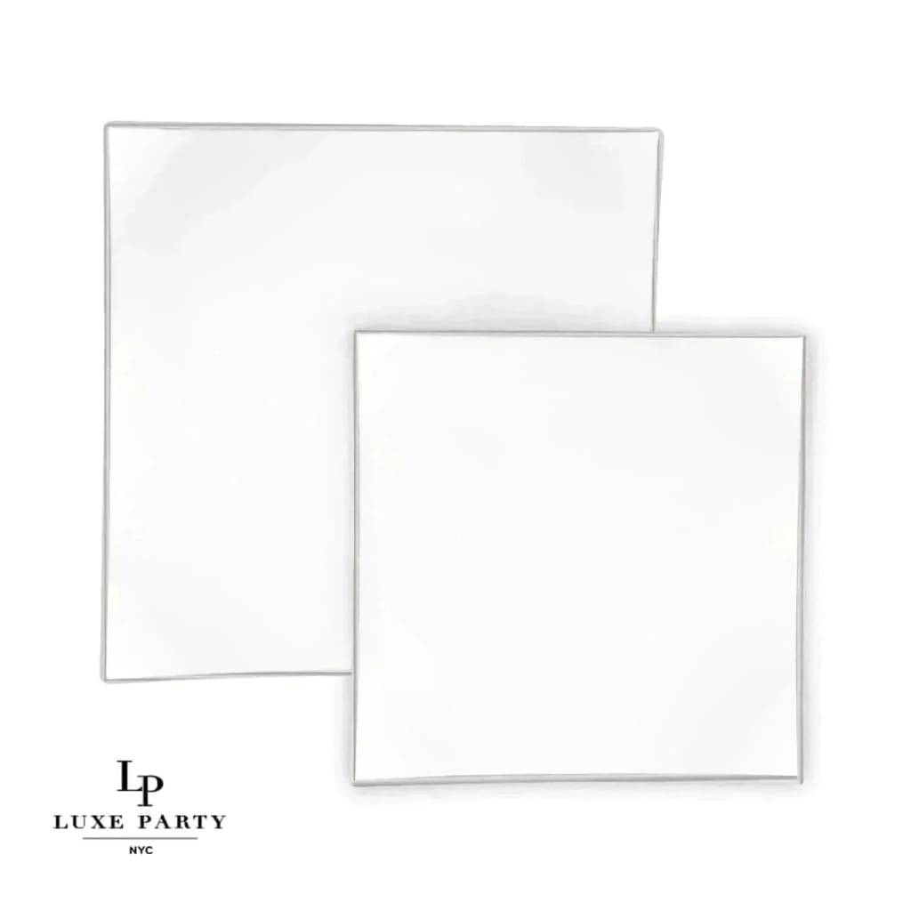Square Coupe White • Silver Plastic Plates | 10 Pack
