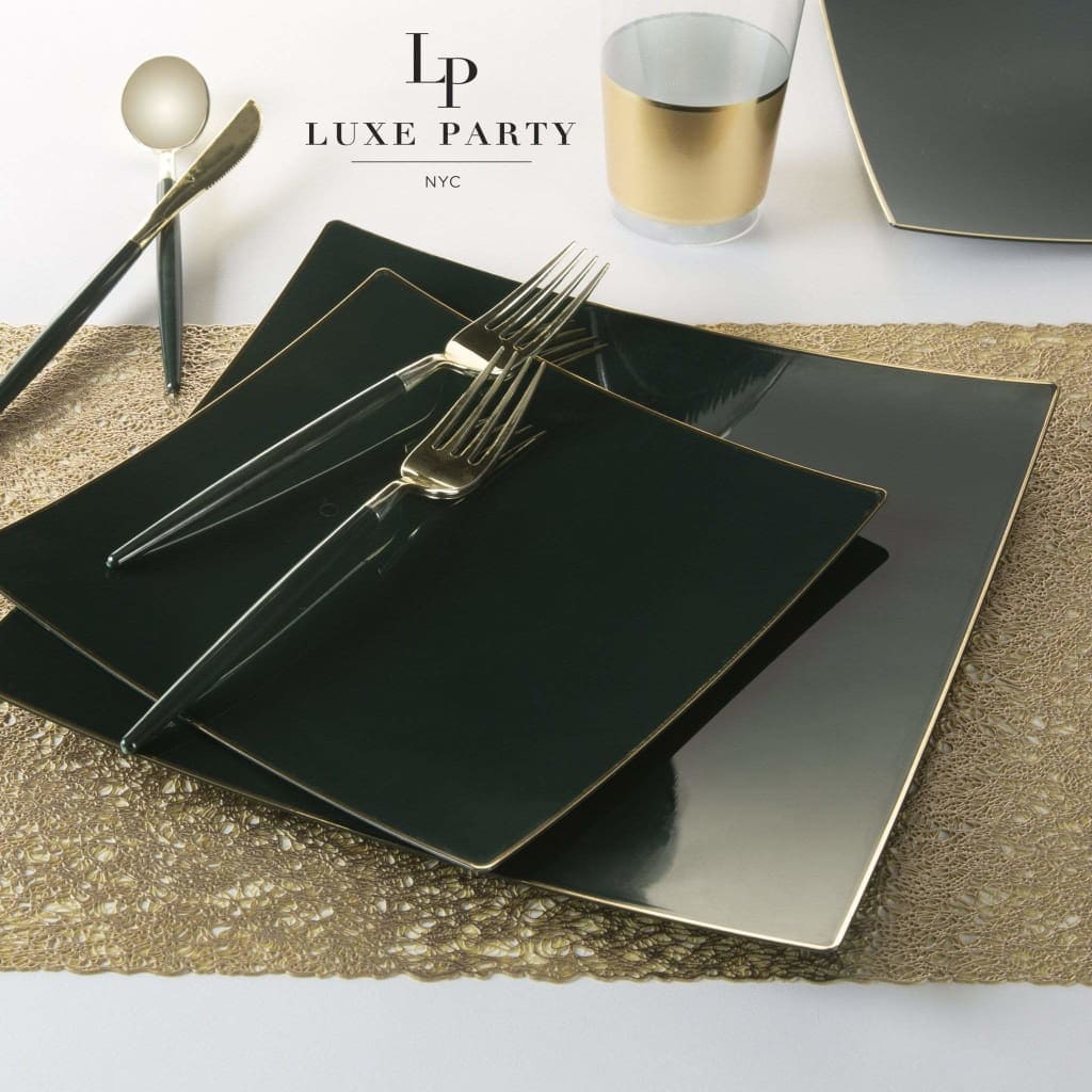 Square Emerald • Gold Plastic Plates | 10 Pack