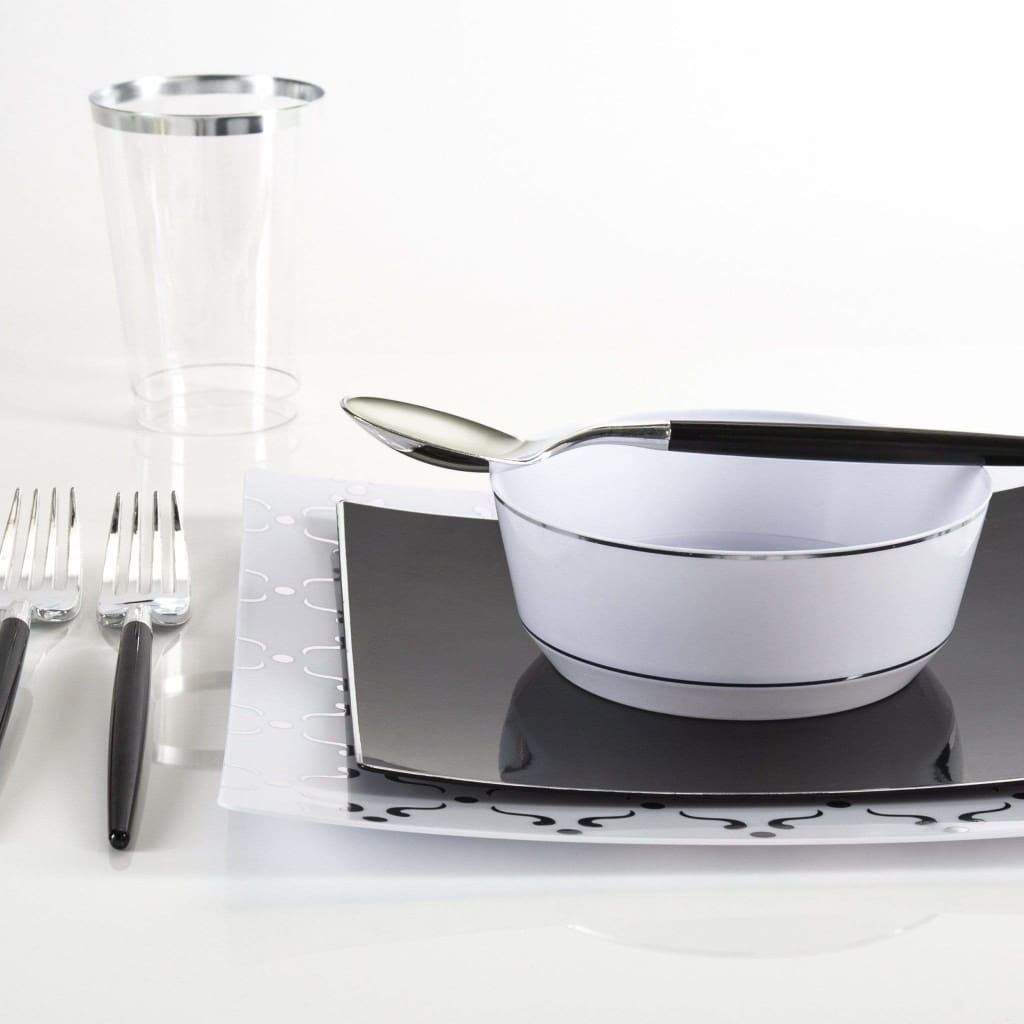 The metallic silver pattern on the face of the plate, and on the outer rim, give it a graceful, luxurious air that will impress and spark conversation. This item is disposable, for added convenience. Use once, or hand wash to reuse.