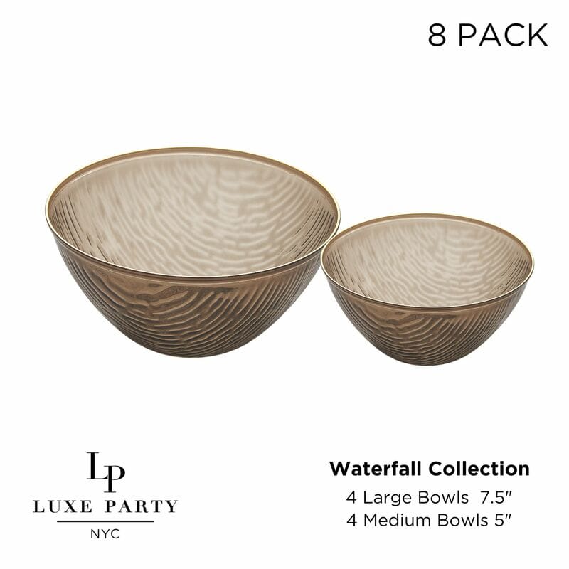 Each pack includes 4 soup bowls (14 oz) and 4 dessert bowls (7 oz) — perfectly sized for generous servings of soups, salads, desserts, or snacks. Crafted in a translucent brown hue , these bowls enhance any event theme, from weddings and baby showers to dinner parties and festive gatherings.
