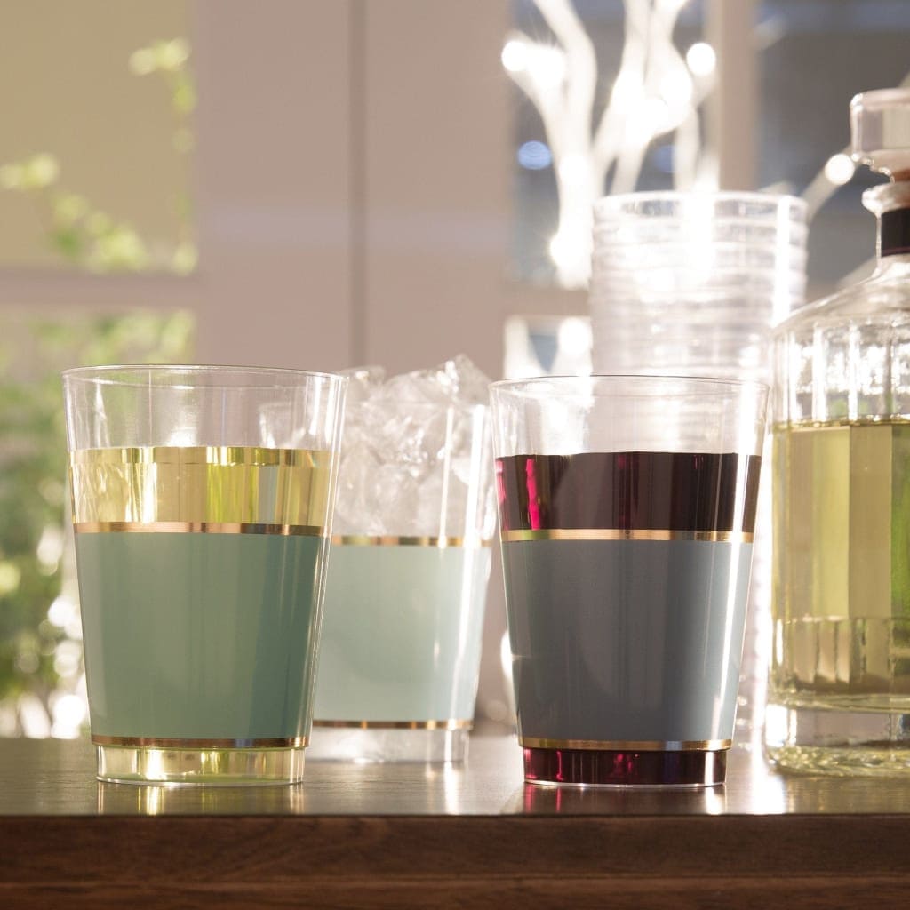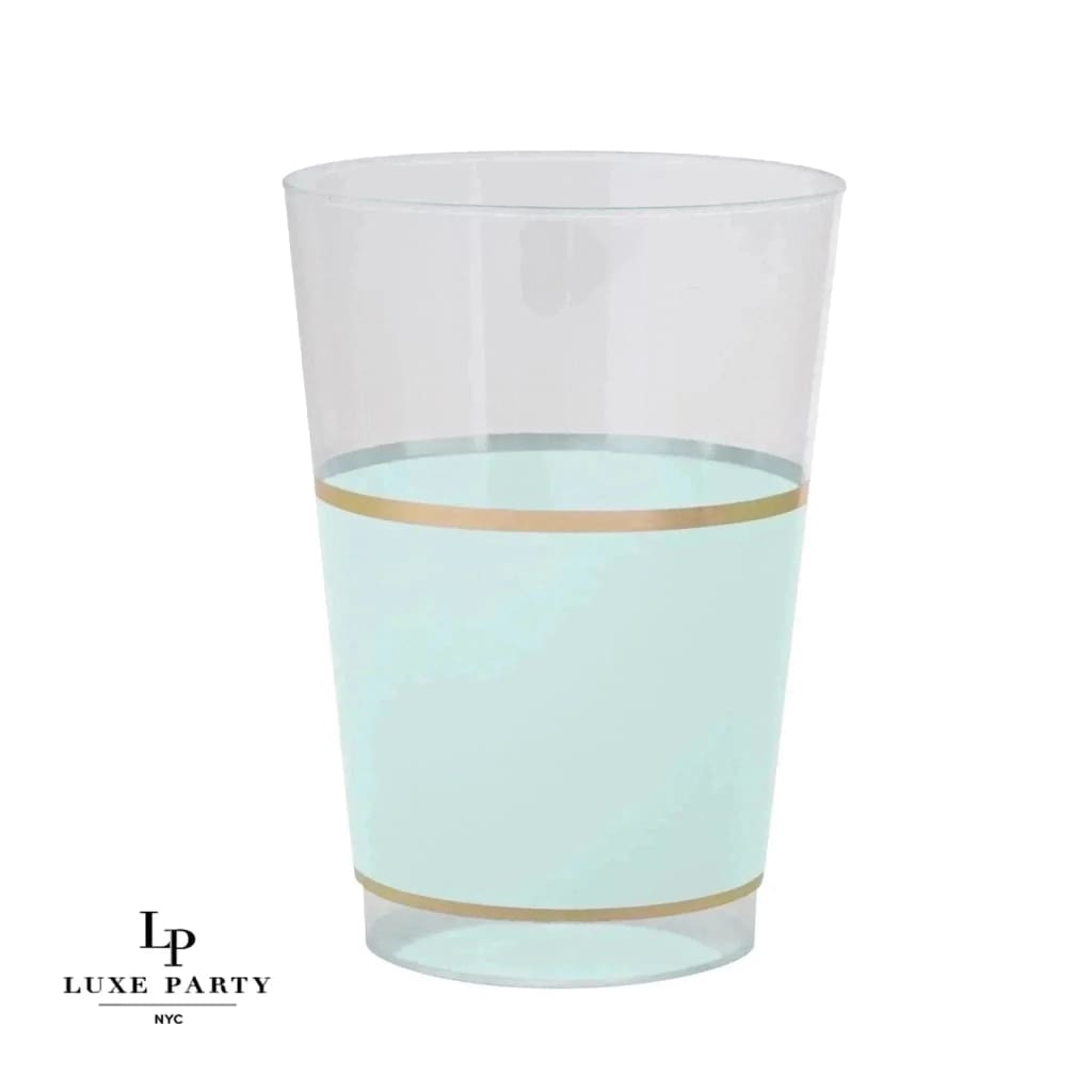 Round Mint Green and Gold Banded Plastic Tumblers | Luxe Party