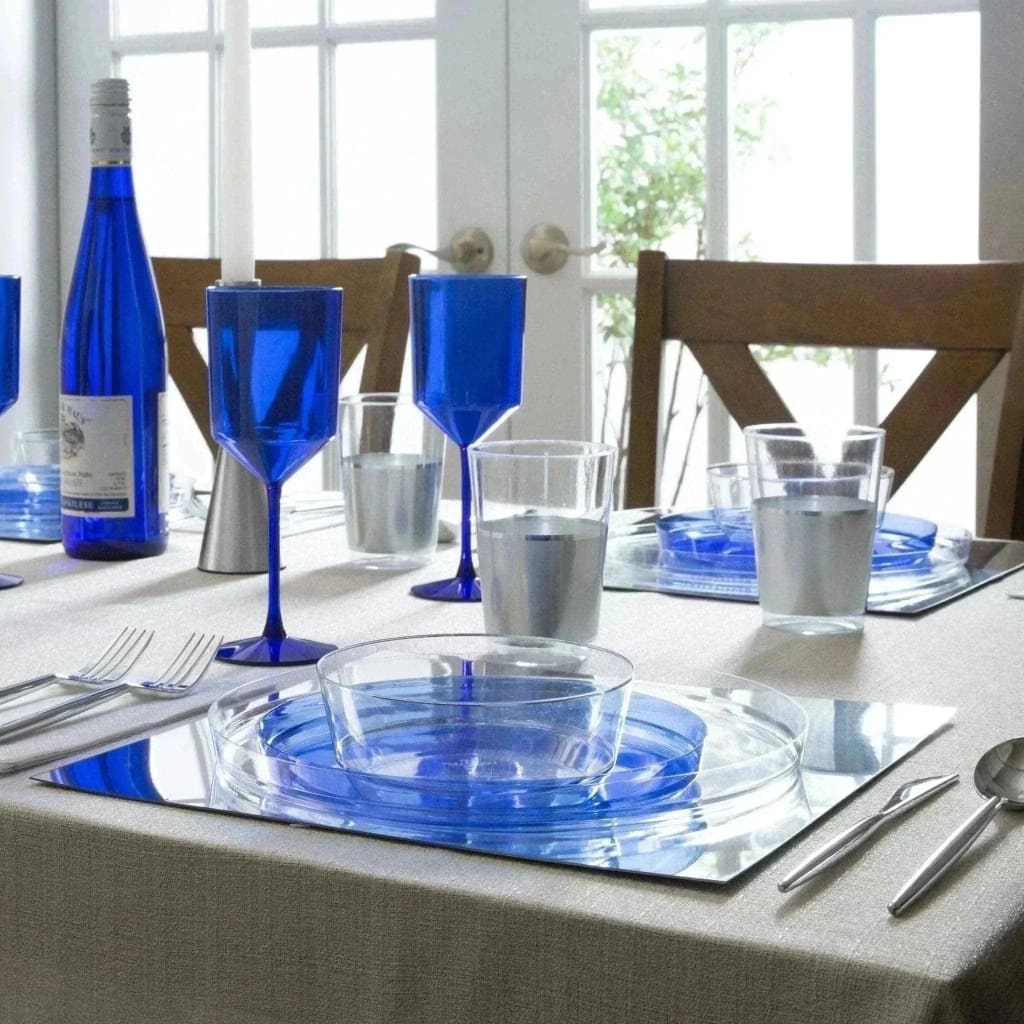 The sleek and modern transparent blue design adds a touch of sophistication to your table setting, making a bold statement.