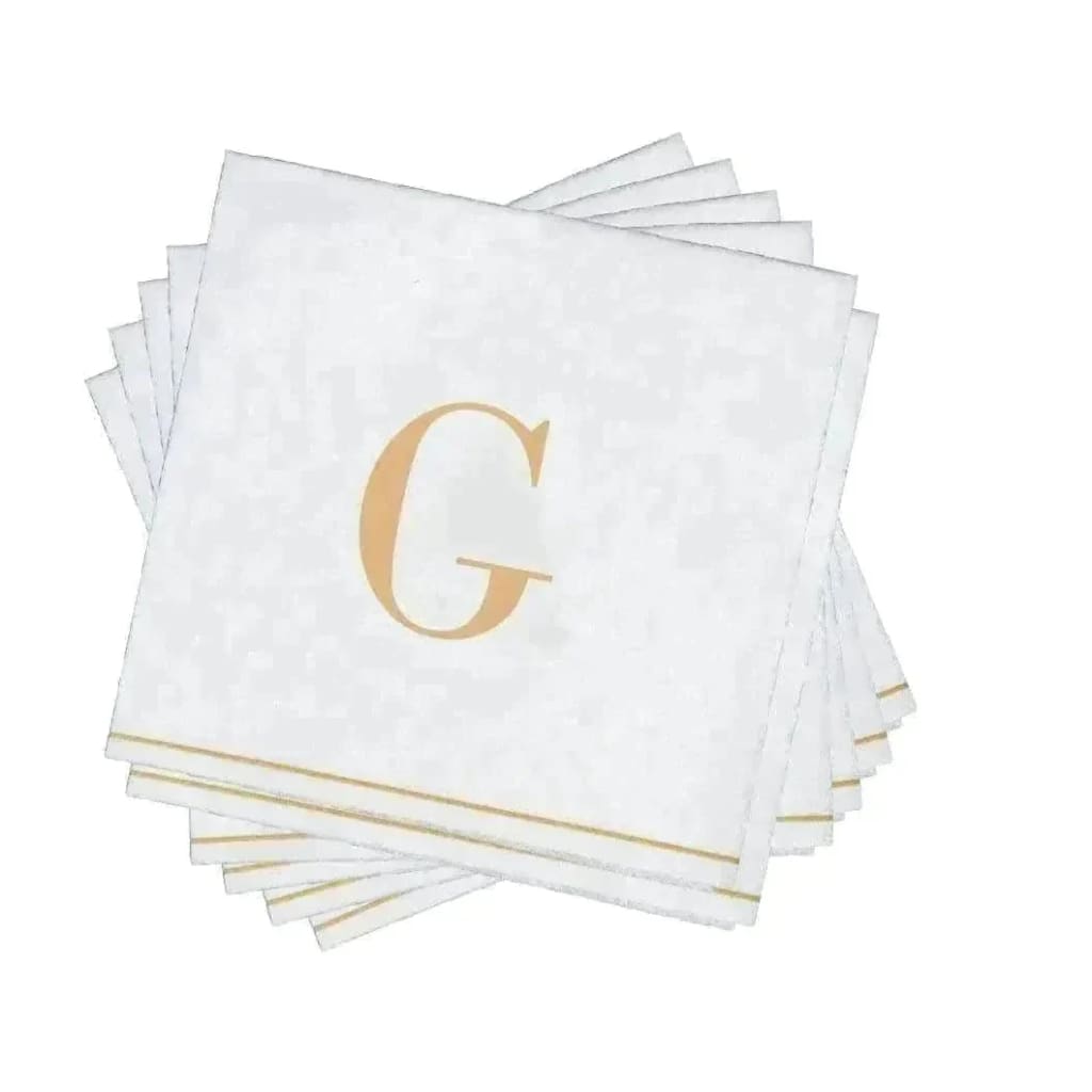 Letter G White and Gold Monogram Cocktail Paper Disposable Napkins | 16 Napkins