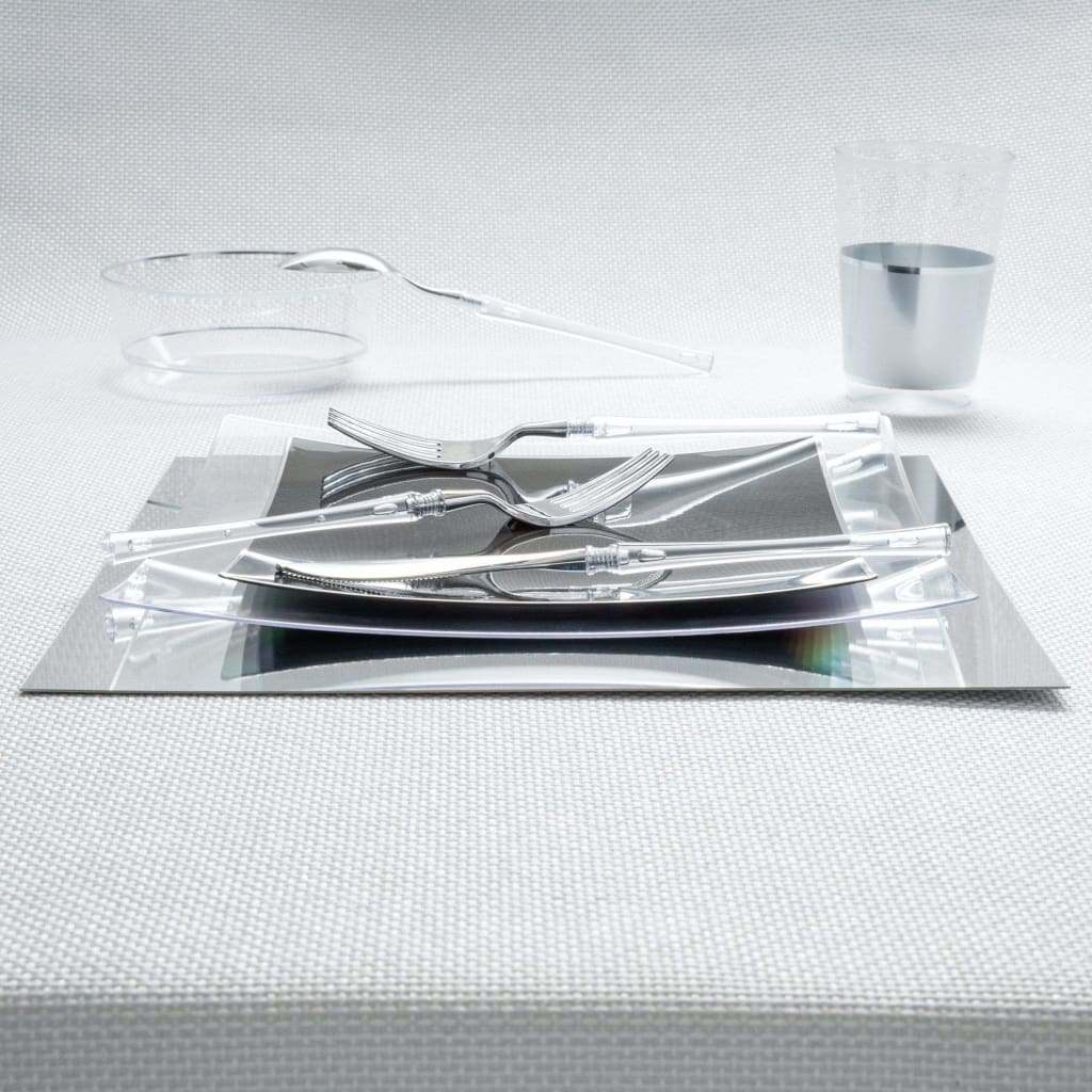 12" Silver Square Light Weight Mirror Charger Plate | 6 Chargers