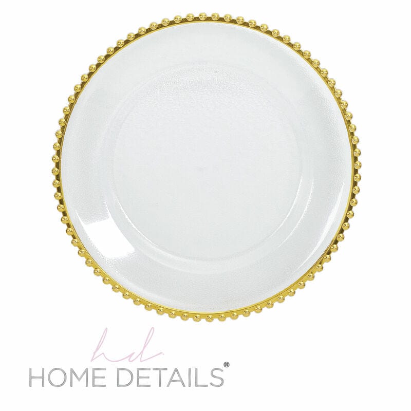 13" White with Gold Beads Round Plastic Charger Plate | 1 Charger