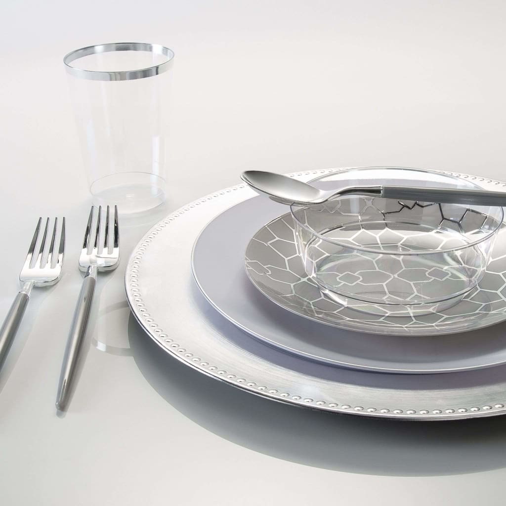 13" Silver Beaded Round Plastic Charger Plate | 1 Charger