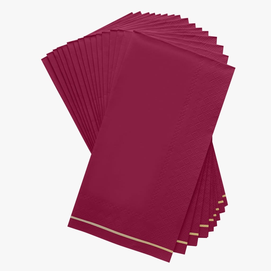 Cranberry Red with Gold Stripe Guest Paper Dinner Napkins | 16 Napkins