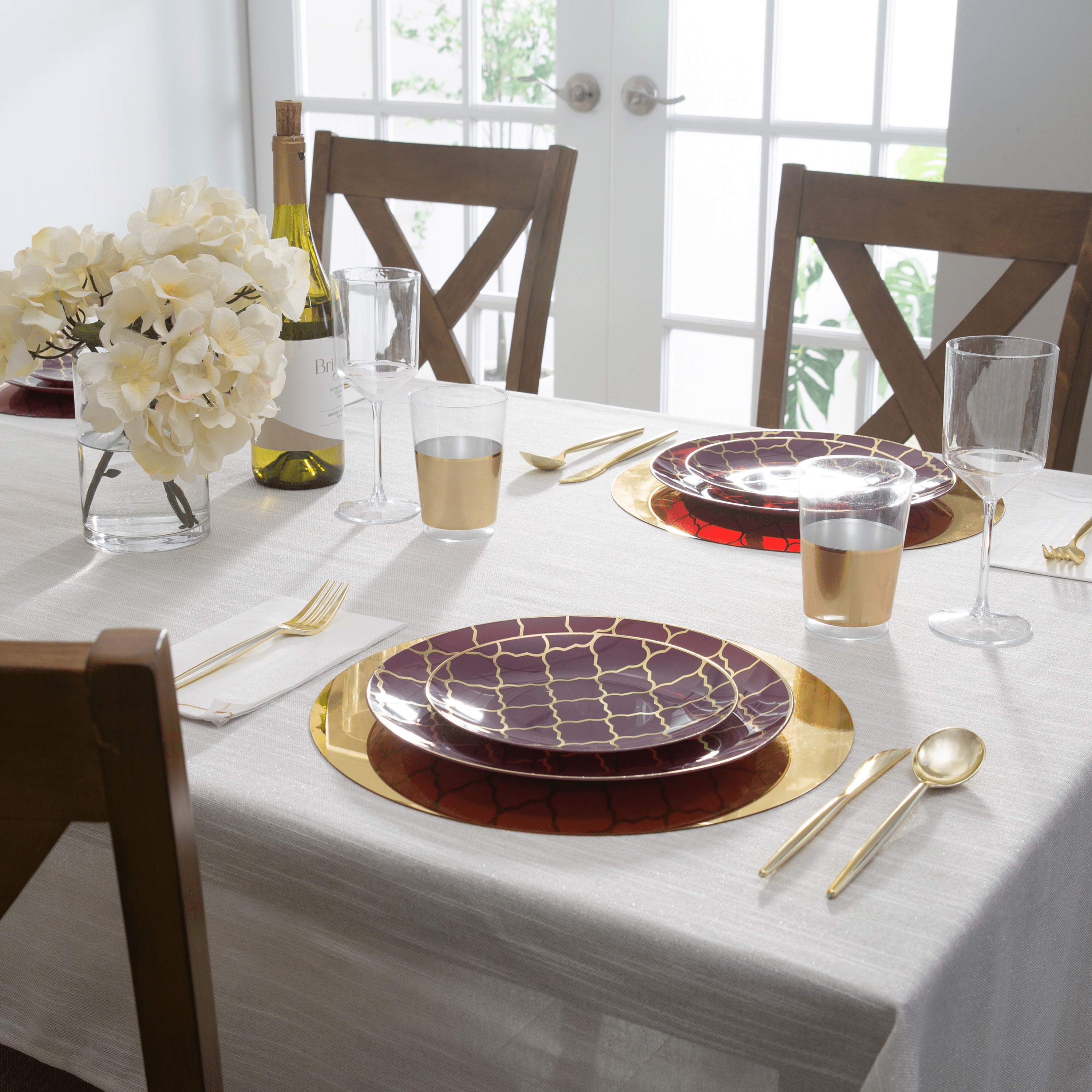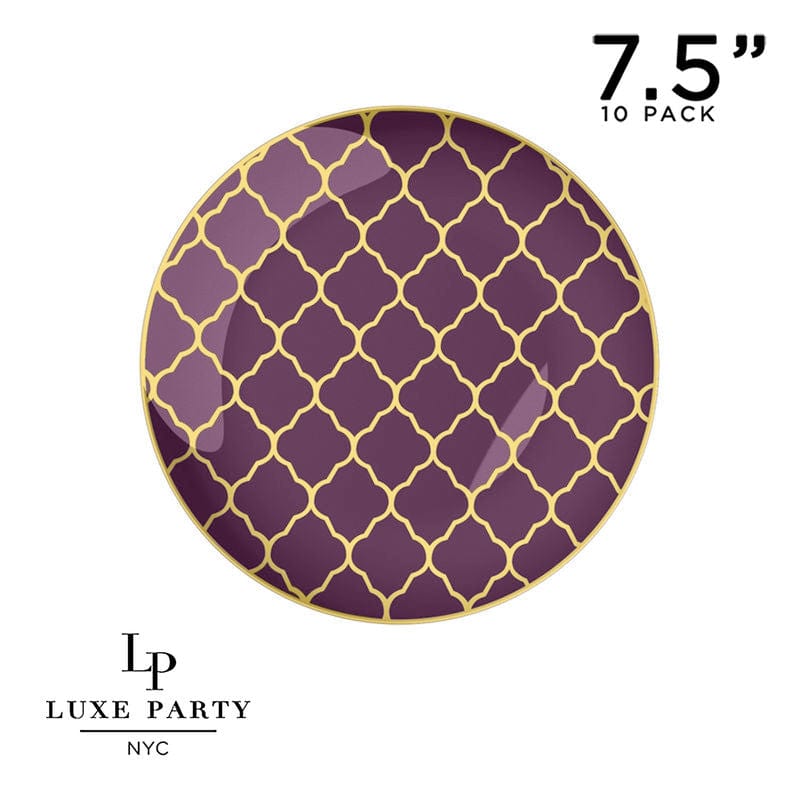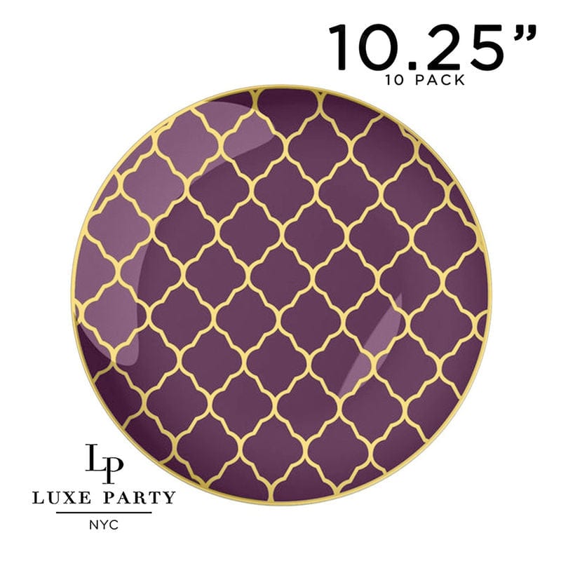Round Purple • Gold Lattice Pattern Plastic Plates | 10 Pack