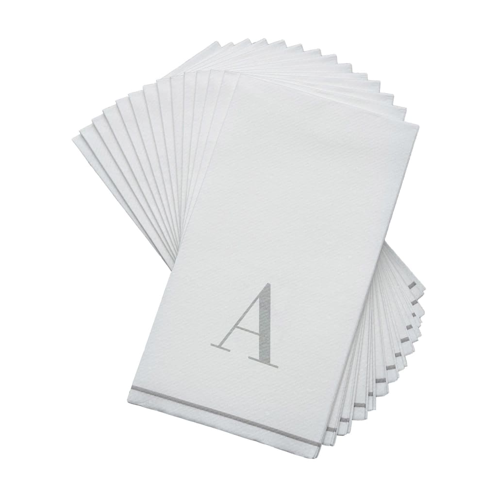 Letter A White and Silver Monogram Paper Disposable Dinner Napkins | 14 Napkins