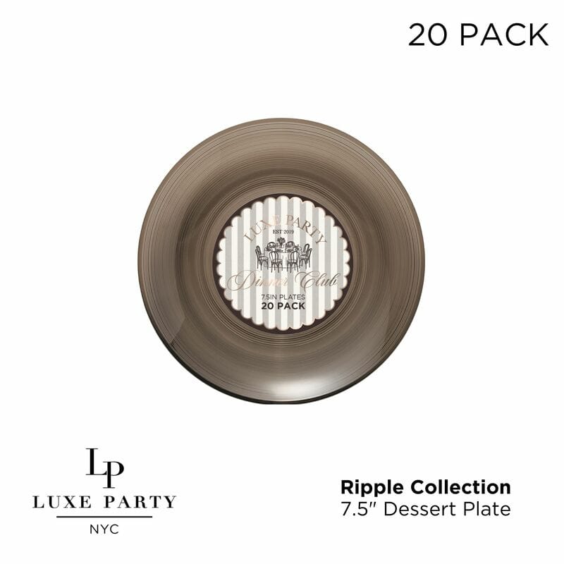 Welcome to Luxe Party's Round Ripple Brown Plastic 7.5" Appetizer Plates, the perfect choice for serving your meals with style and sophistication at your next event.