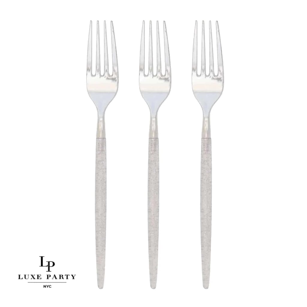 Silver Glitter Plastic Forks