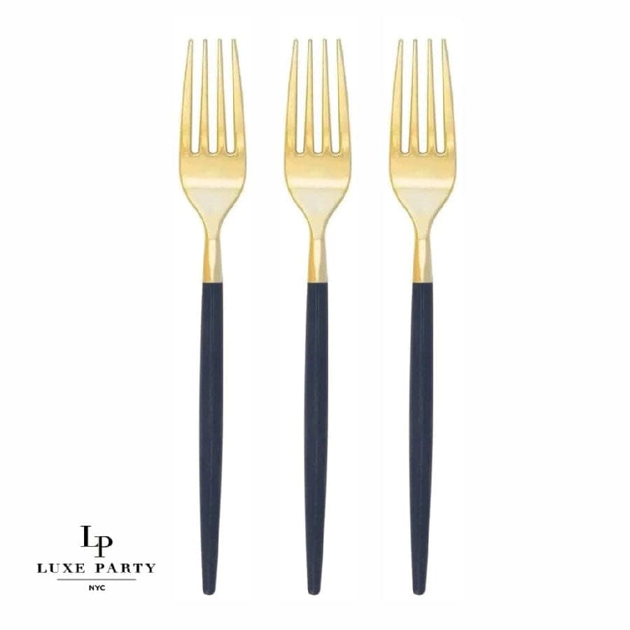 Chic Navy and Gold Plastic Forks | 32 Pieces