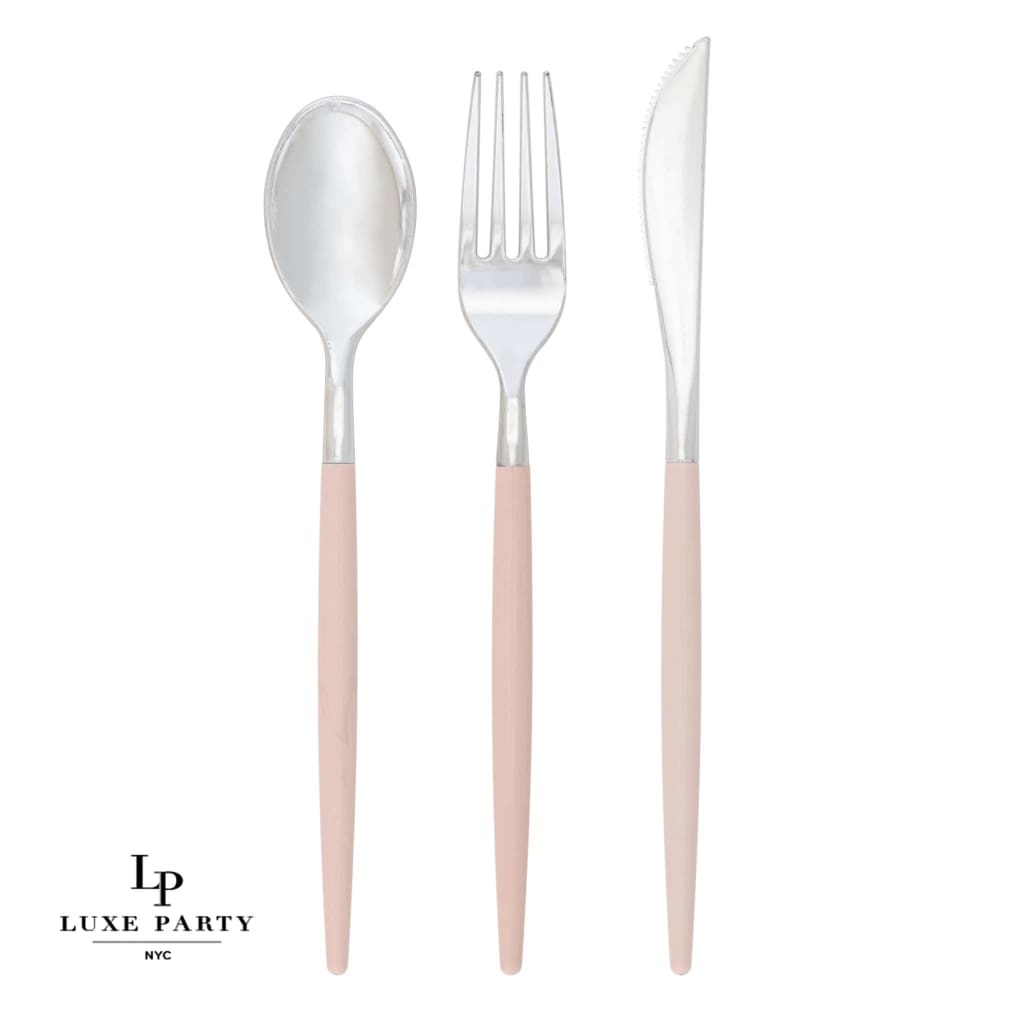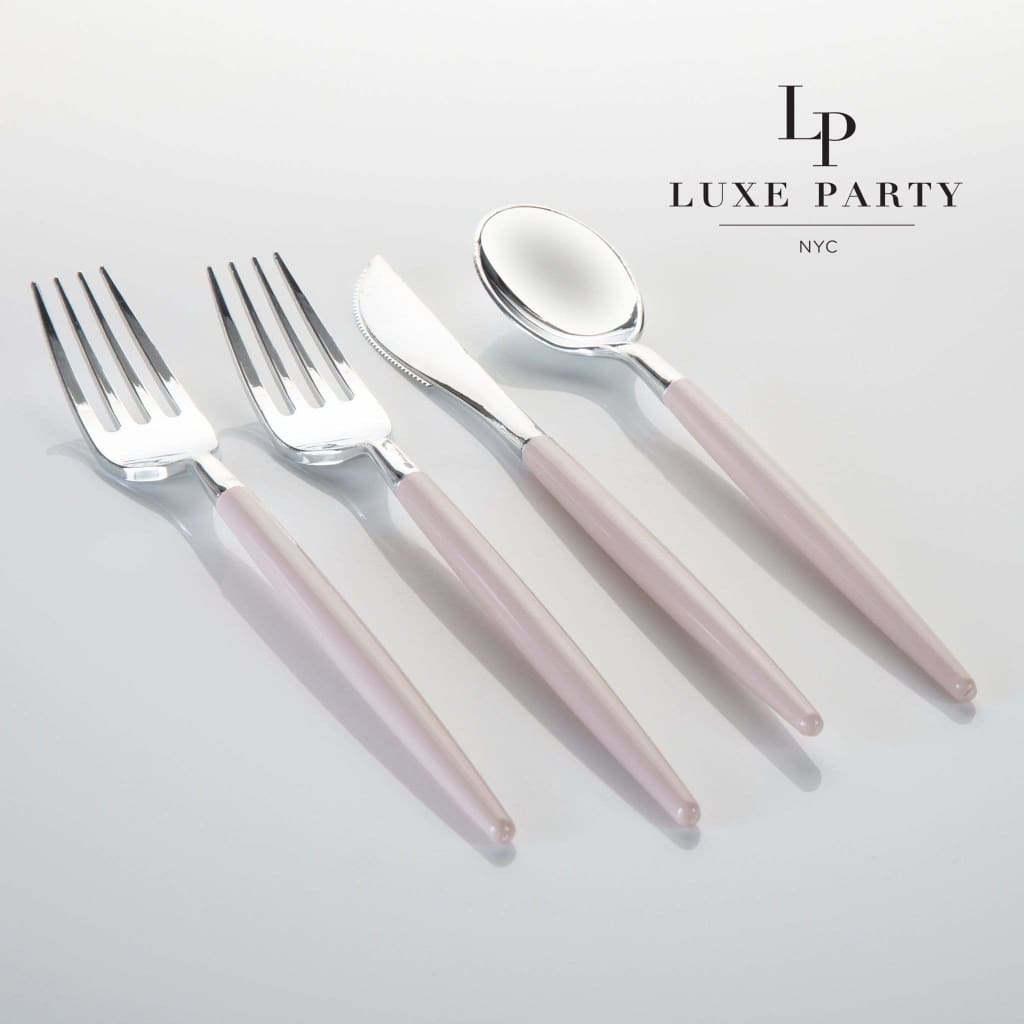 Blush Pink and Silver Two-Tone Plastic Cutlery Set