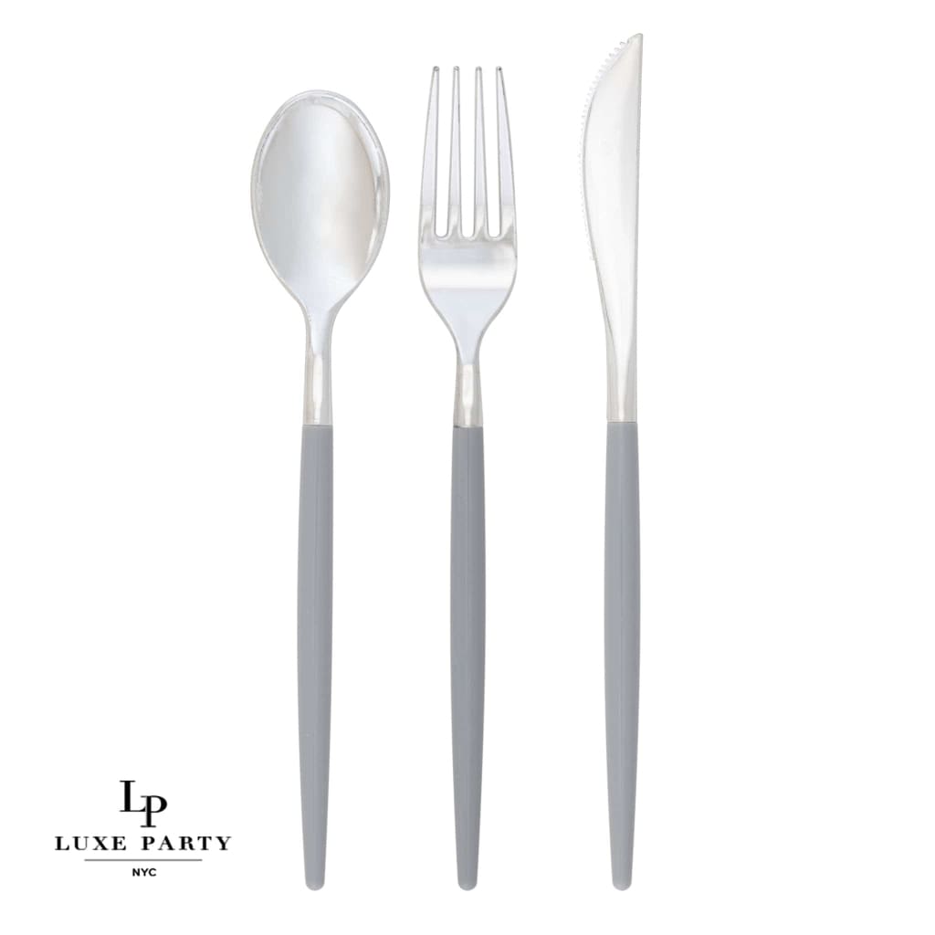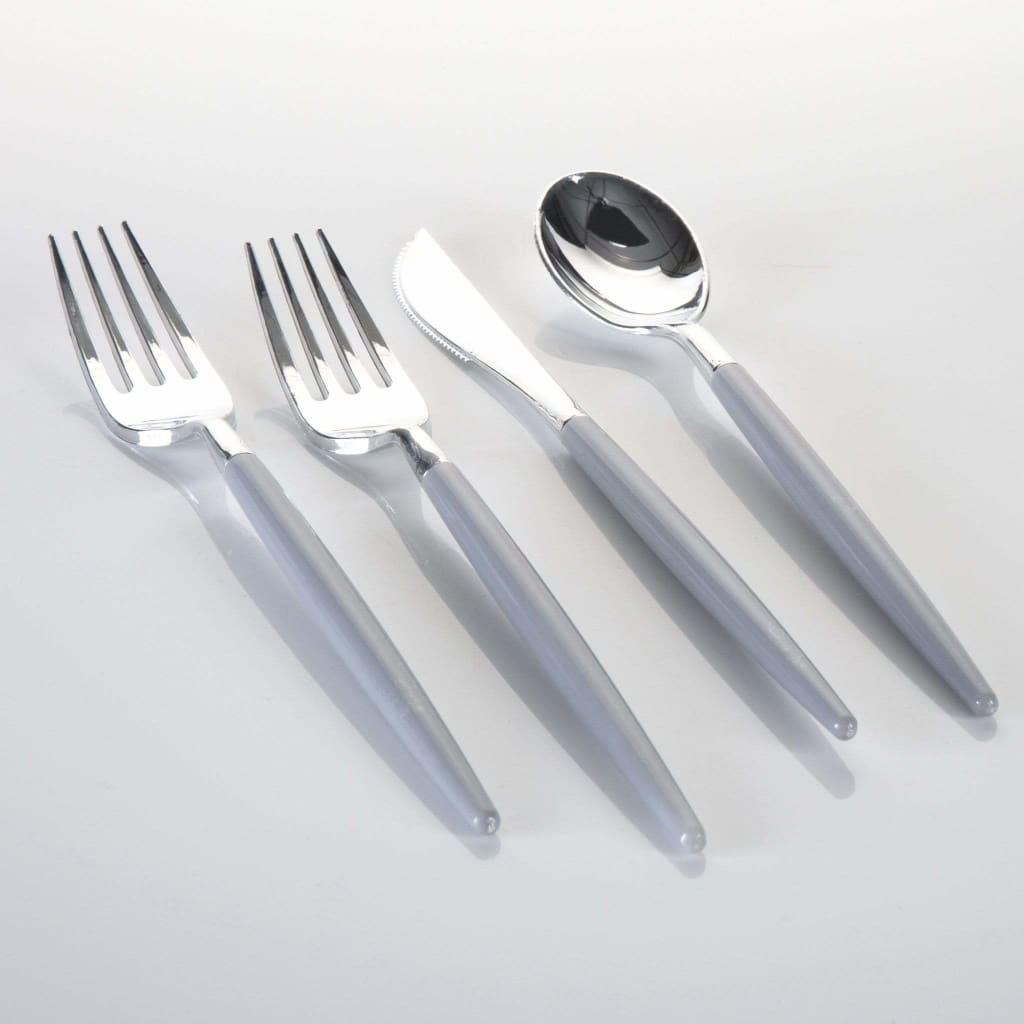 Grey and Silver Two-Tone Plastic Cutlery Set
