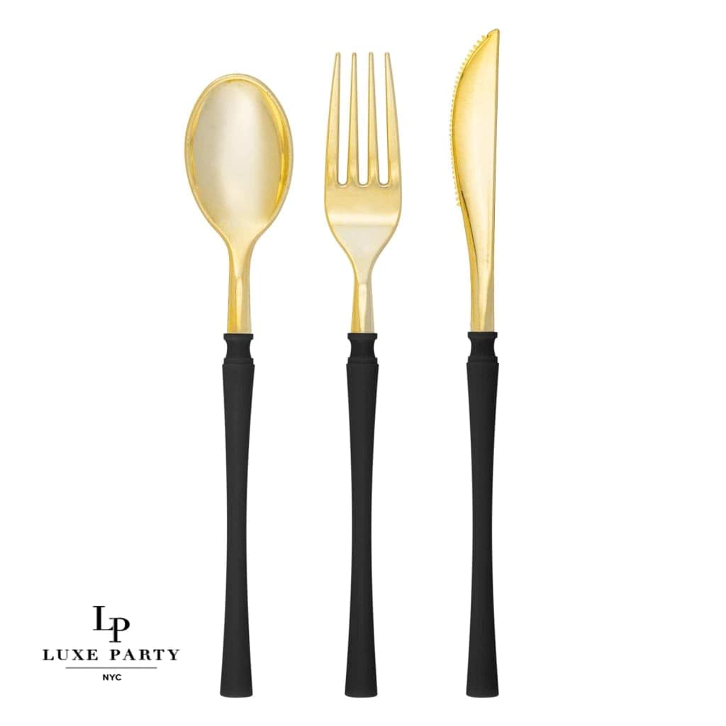 Neo Classic Black • Gold Plastic Cutlery Set | 32 Pieces