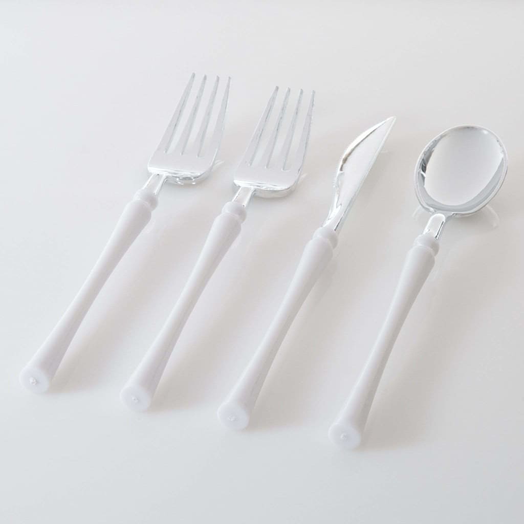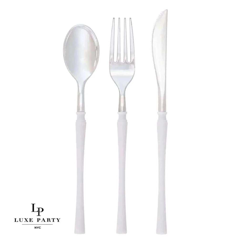 Neo Classic White • Silver Plastic Cutlery Set | 32 Pieces