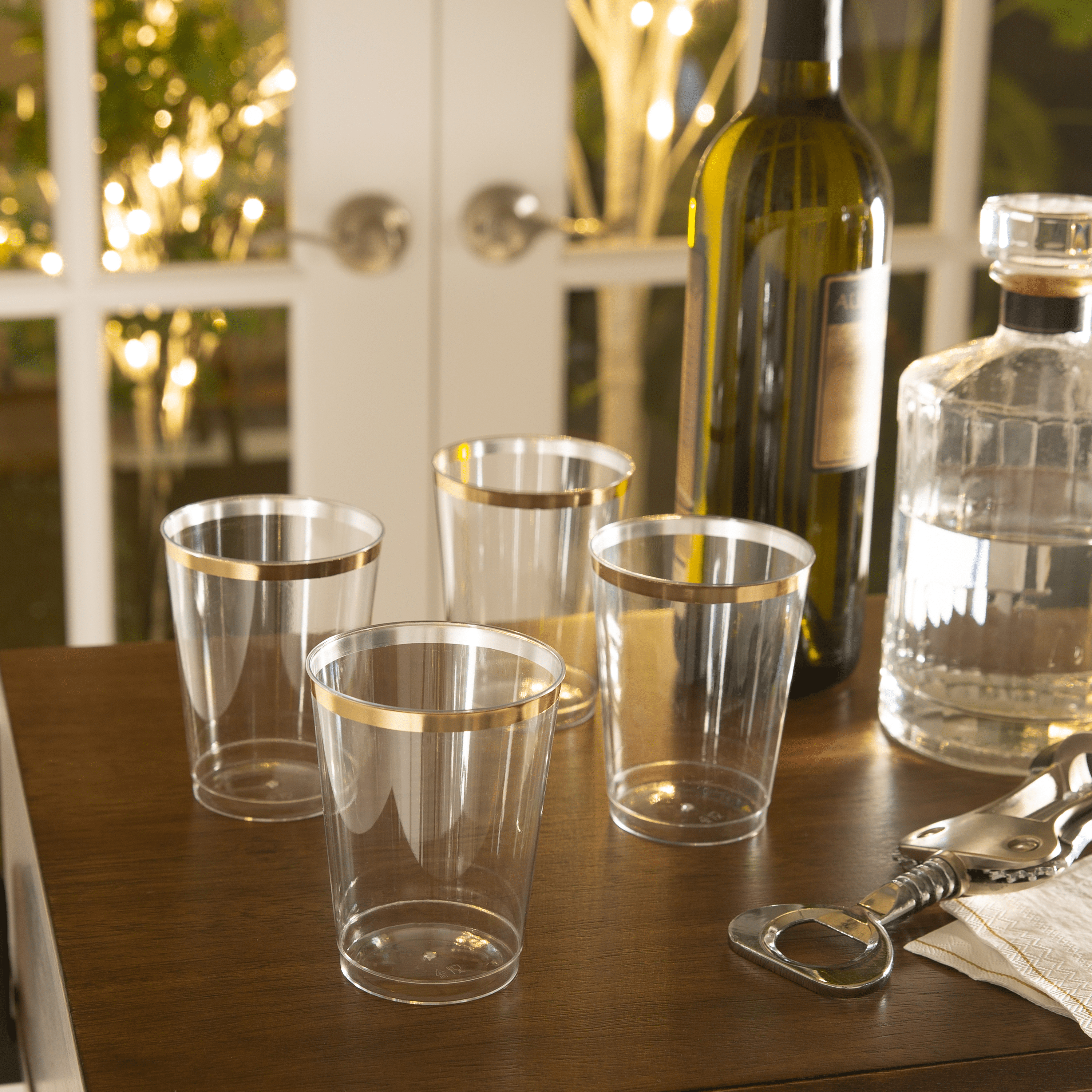 Luxe 9 Oz Clear Plastic • Gold Plastic Cups | 20 Cups