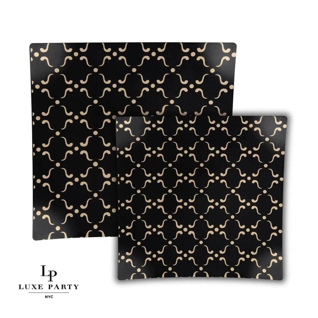 Square Black • Gold Pattern Plastic Plates | 10 Plates