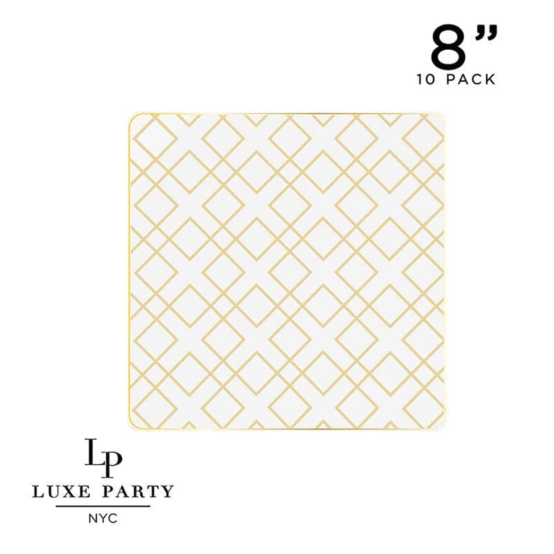 Square Clear • Gold Art Deco Pattern Plastic Plates | 10 Plates